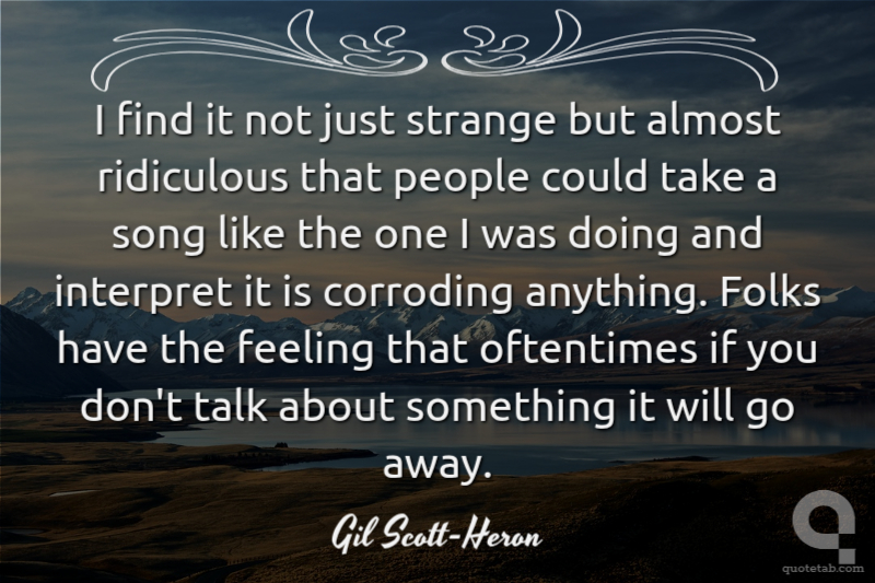 I find it not just strange but almost ridiculous that people could take a song like the one I was doing and interpret it is corroding anything. Folks have the feeling that oftentimes if you don't talk about something it will go away.