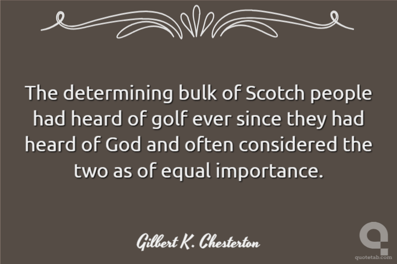 The determining bulk of Scotch people had heard of golf ever since they had heard of God and often considered the two as of equal importance.