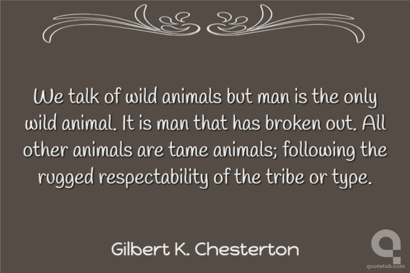 We talk of wild animals but man is the only wild animal. It is man that has broken out. All other animals are tame animals; following the rugged respectability of the tribe or type.