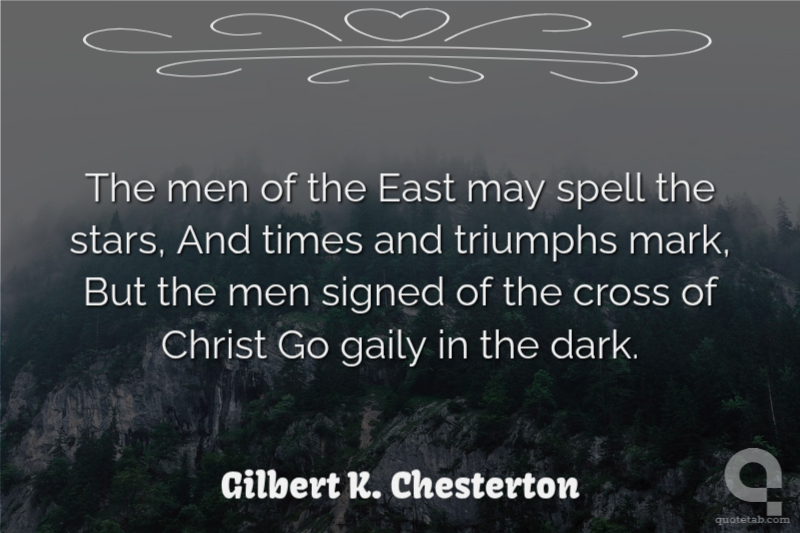 The men of the East may spell the stars, And times and triumphs mark, But the men signed of the cross of Christ Go gaily in the dark.