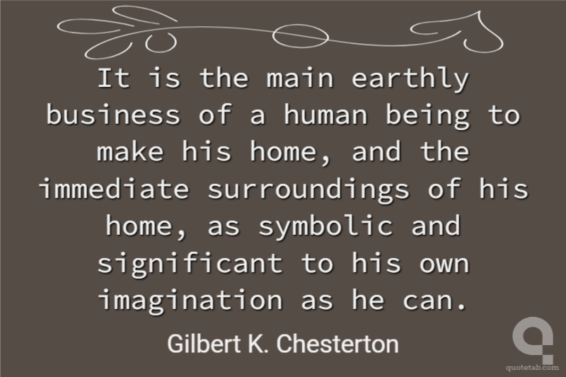 It is the main earthly business of a human being to make his home, and the immediate surroundings of his home, as symbolic and significant to his own imagination as he can.