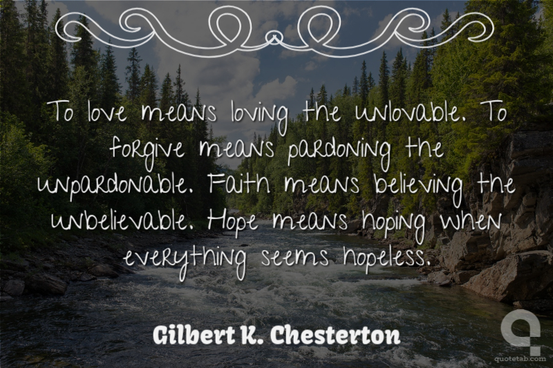 To love means loving the unlovable. To forgive means pardoning the unpardonable. Faith means believing the unbelievable. Hope means hoping when everything seems hopeless.