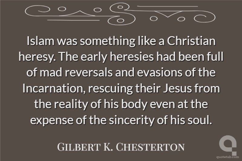 Islam was something like a Christian heresy. The early heresies had been full of mad reversals and evasions of the Incarnation, rescuing their Jesus from the reality of his body even at the expense of the sincerity of his soul.