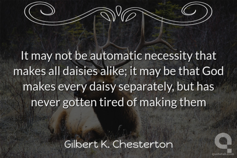 It may not be automatic necessity that makes all daisies alike; it may be that God makes every daisy separately, but has never gotten tired of making them