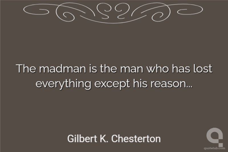 Gilbert Keith Chesterton, KC*SG, better known as G. K. Chesterton, was an English writer, poet, philosopher, dramatist, journalist, orator, lay theologian, biographer, and literary and art critic. Chesterton is often referred to as the "prince of paradox." Time magazine has observed of his writing style: "Whenever possible Chesterton made his points with popular sayings, proverbs, allegories—first carefully turning them inside out."...