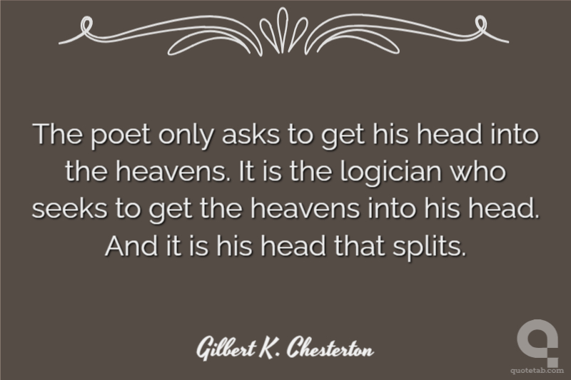 The poet only asks to get his head into the heavens. It is the logician who seeks to get the heavens into his head. And it is his head that splits.