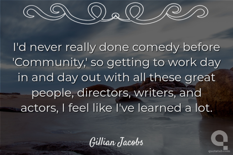 I'd never really done comedy before 'Community,' so getting to work day in and day out with all these great people, directors, writers, and actors, I feel like I've learned a lot.