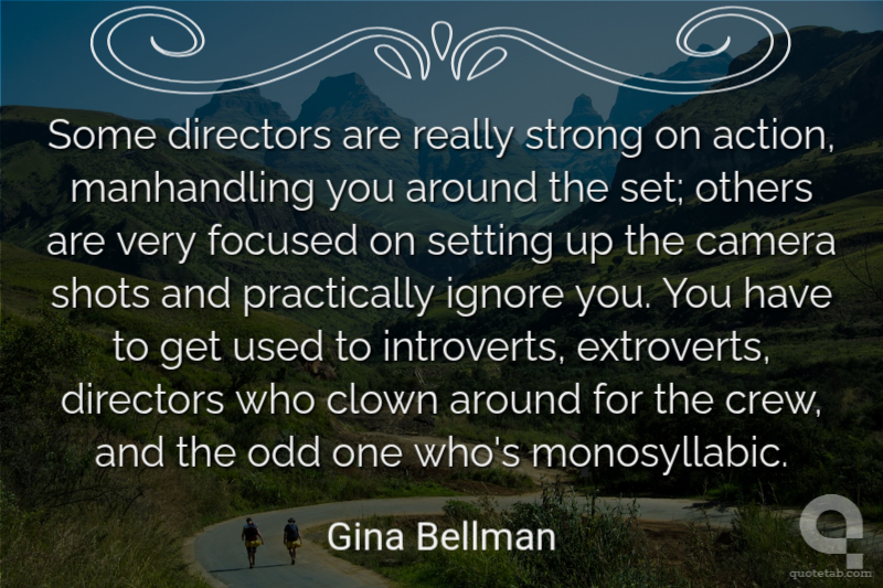 Some directors are really strong on action, manhandling you around the set; others are very focused on setting up the camera shots and practically ignore you. You have to get used to introverts, extroverts, directors who clown around for the crew, and the odd one who's monosyllabic.