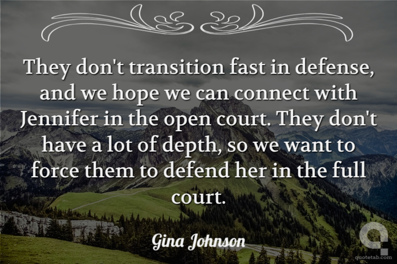 They don't transition fast in defense, and we hope we can connect with Jennifer in the open court. They don't have a lot of depth, so we want to force them to defend her in the full court.