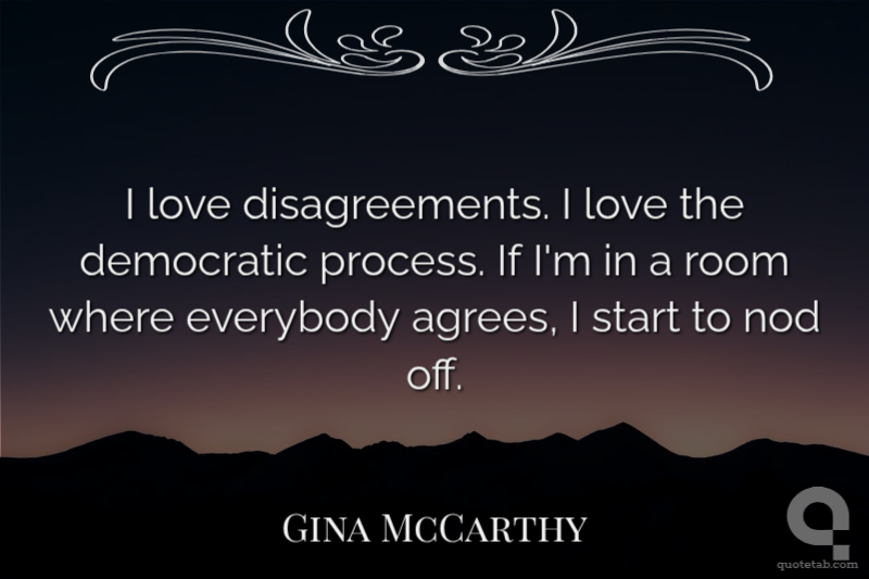 I love disagreements. I love the democratic process. If I'm in a room where everybody agrees, I start to nod off.