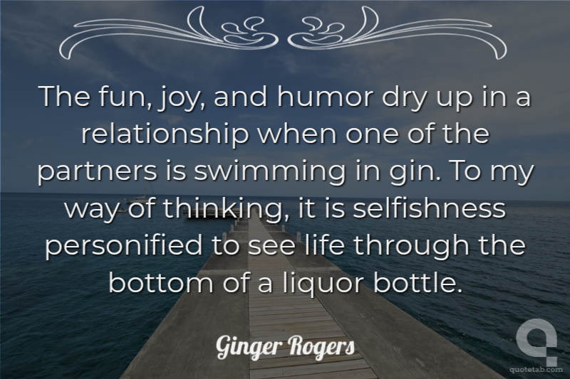 The fun, joy, and humor dry up in a relationship when one of the partners is swimming in gin. To my way of thinking, it is selfishness personified to see life through the bottom of a liquor bottle.