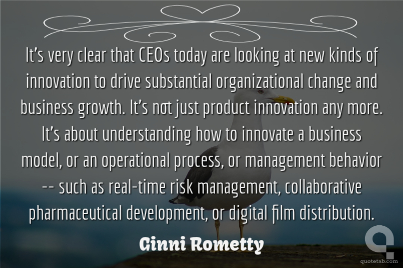 It's very clear that CEOs today are looking at new kinds of innovation to drive substantial organizational change and business growth. It's not just product innovation any more. It's about understanding how to innovate a business model, or an operational process, or management behavior -- such as real-time risk management, collaborative pharmaceutical development, or digital film distribution.