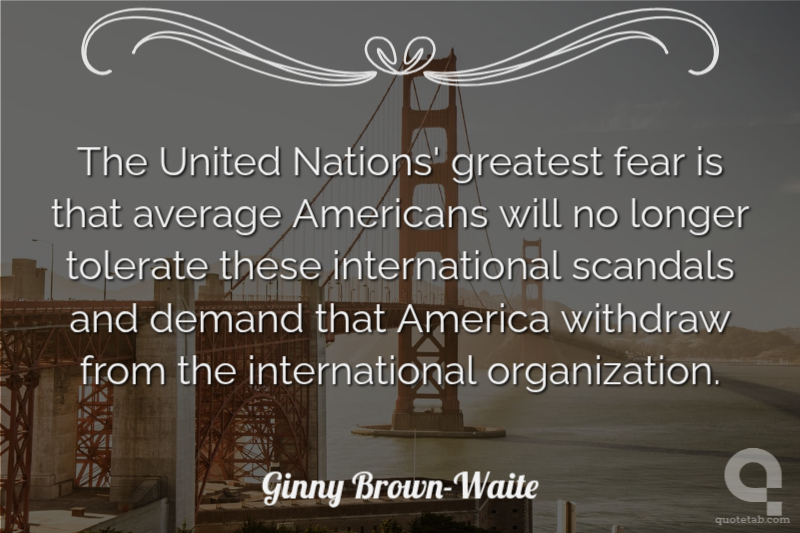 The United Nations' greatest fear is that average Americans will no longer tolerate these international scandals and demand that America withdraw from the international organization.