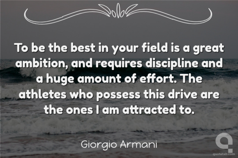 To be the best in your field is a great ambition, and requires discipline and a huge amount of effort. The athletes who possess this drive are the ones I am attracted to.