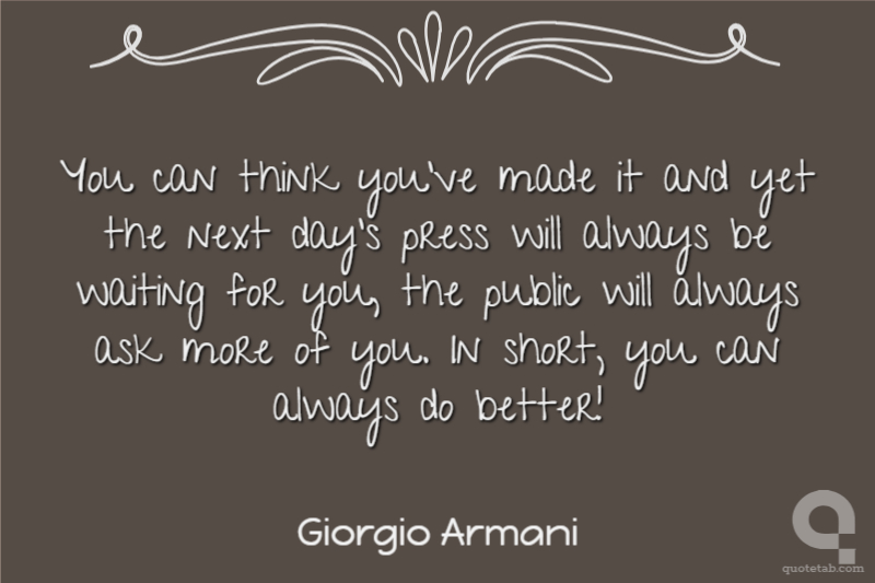 You can think you've made it and yet the next day's press will always be waiting for you, the public will always ask more of you. In short, you can always do better!