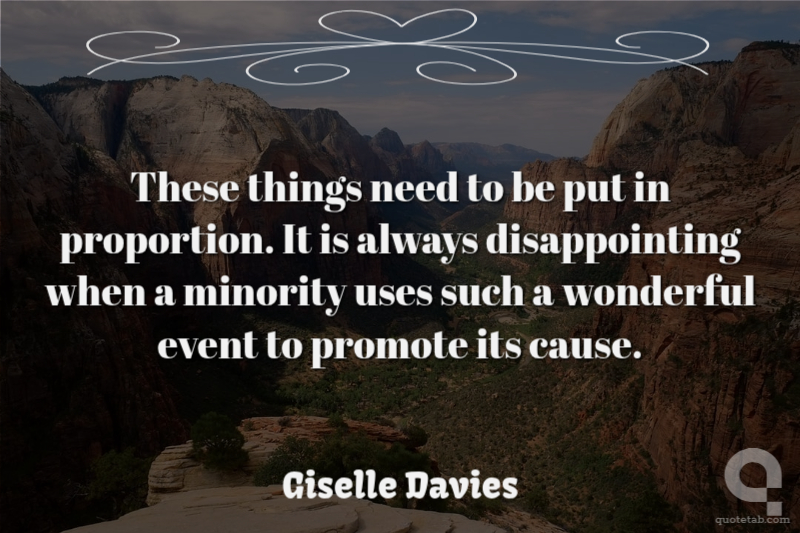These things need to be put in proportion. It is always disappointing when a minority uses such a wonderful event to promote its cause.