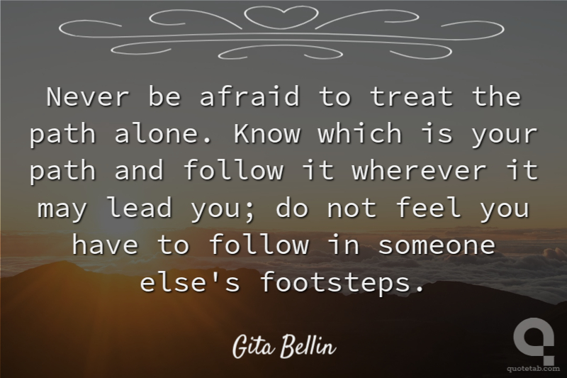 Never be afraid to treat the path alone. Know which is your path and follow it wherever it may lead you; do not feel you have to follow in someone else's footsteps.