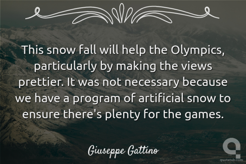 This snow fall will help the Olympics, particularly by making the views prettier. It was not necessary because we have a program of artificial snow to ensure there's plenty for the games.