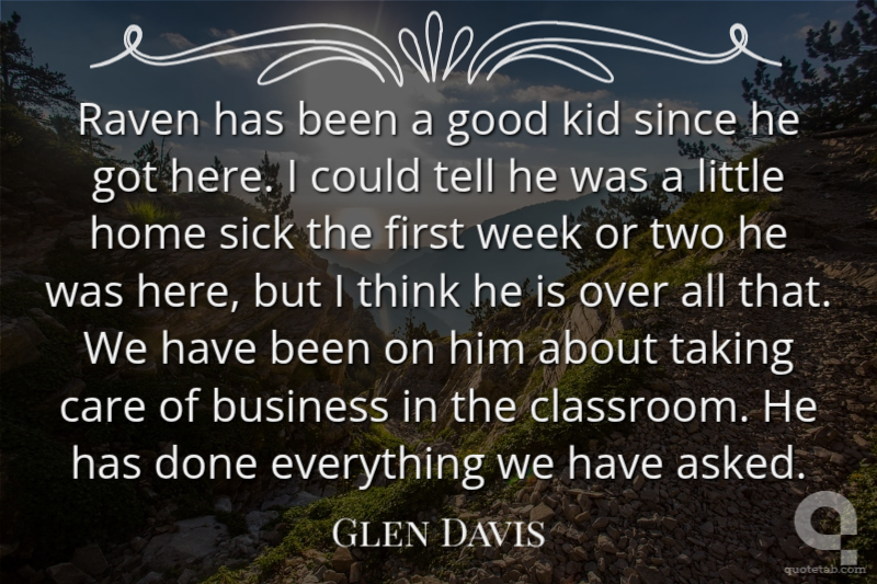 Raven has been a good kid since he got here. I could tell he was a little home sick the first week or two he was here, but I think he is over all that. We have been on him about taking care of business in the classroom. He has done everything we have asked.