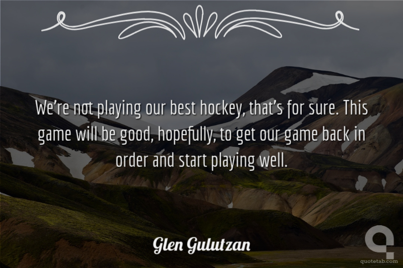 We're not playing our best hockey, that's for sure. This game will be good, hopefully, to get our game back in order and start playing well.
