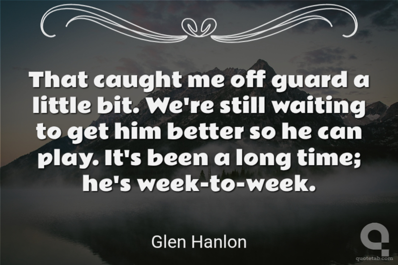That caught me off guard a little bit. We're still waiting to get him better so he can play. It's been a long time; he's week-to-week.