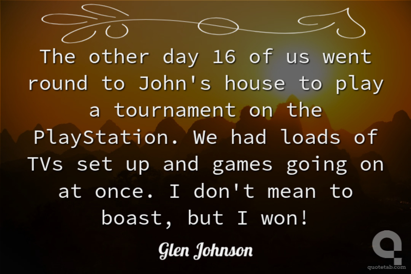 The other day 16 of us went round to John's house to play a tournament on the PlayStation. We had loads of TVs set up and games going on at once. I don't mean to boast, but I won!