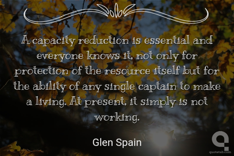 A capacity reduction is essential and everyone knows it, not only for protection of the resource itself but for the ability of any single captain to make a living. At present, it simply is not working.