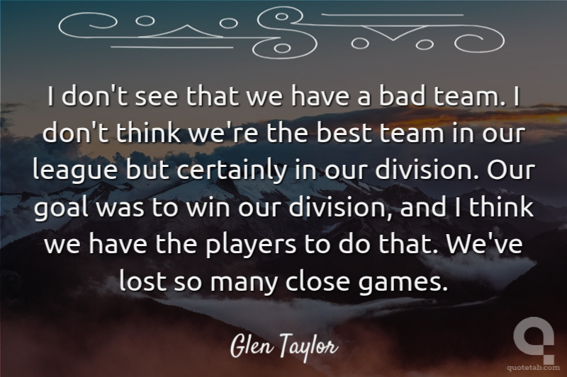 I don't see that we have a bad team. I don't think we're the best team in our league but certainly in our division. Our goal was to win our division, and I think we have the players to do that. We've lost so many close games.