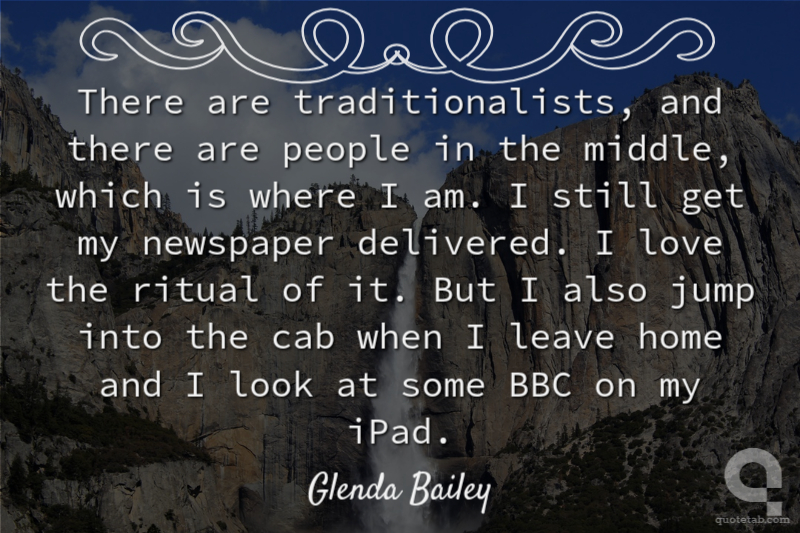 There are traditionalists, and there are people in the middle, which is where I am. I still get my newspaper delivered. I love the ritual of it. But I also jump into the cab when I leave home and I look at some BBC on my iPad.