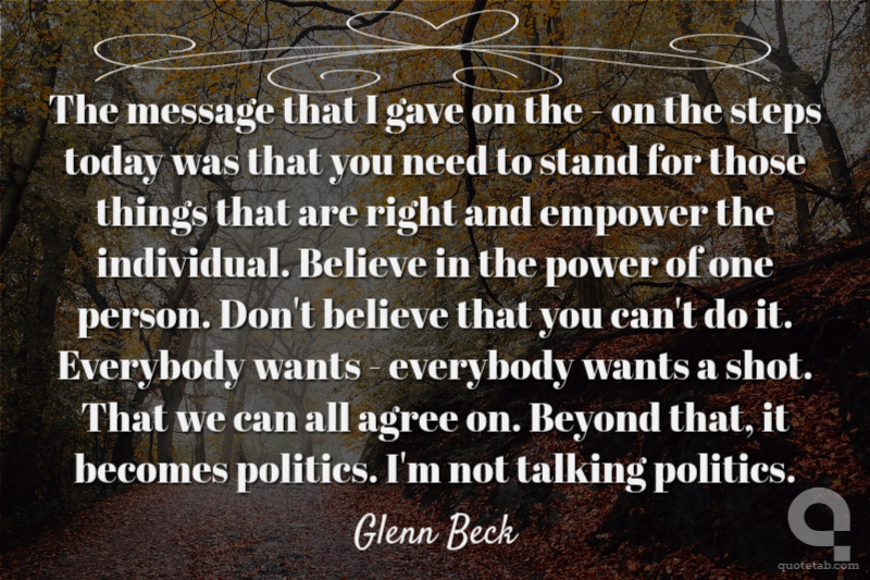 The message that I gave on the - on the steps today was that you need to stand for those things that are right and empower the individual. Believe in the power of one person. Don't believe that you can't do it. Everybody wants - everybody wants a shot. That we can all agree on. Beyond that, it becomes politics. I'm not talking politics.