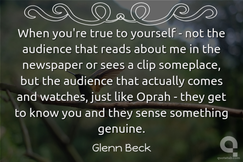 When you're true to yourself - not the audience that reads about me in the newspaper or sees a clip someplace, but the audience that actually comes and watches, just like Oprah - they get to know you and they sense something genuine.