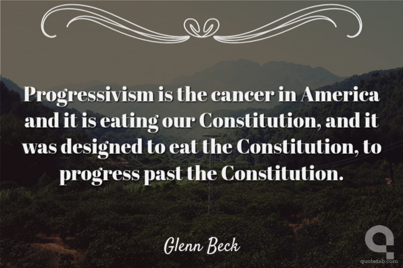 Progressivism is the cancer in America and it is eating our Constitution, and it was designed to eat the Constitution, to progress past the Constitution.