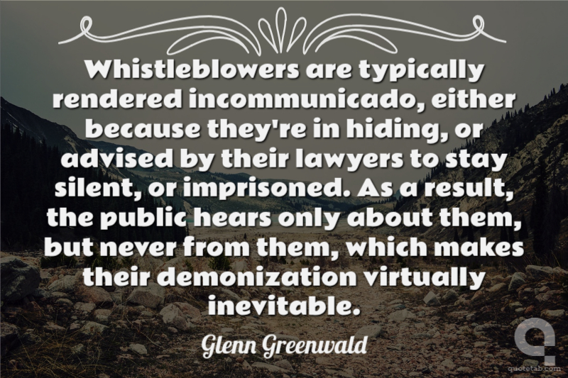 Whistleblowers are typically rendered incommunicado, either because they're in hiding, or advised by their lawyers to stay silent, or imprisoned. As a result, the public hears only about them, but never from them, which makes their demonization virtually inevitable.