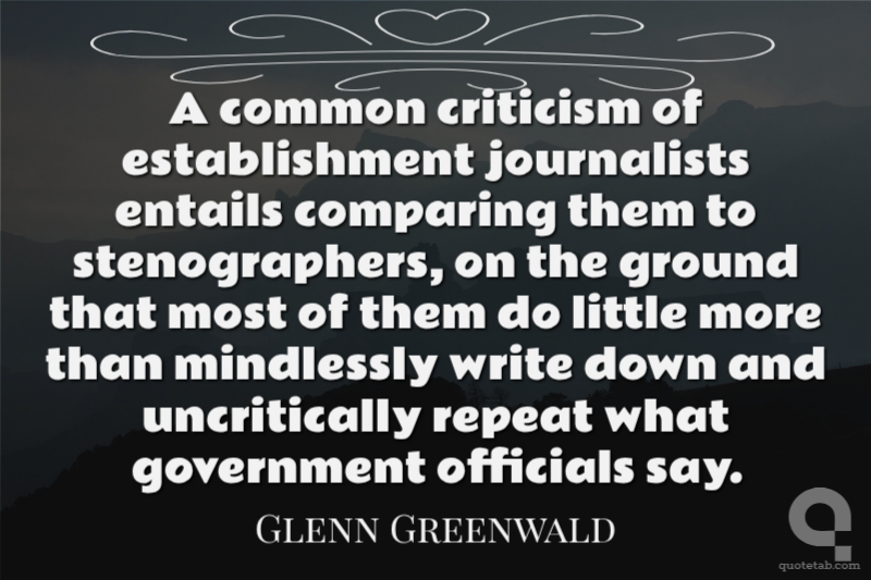 A common criticism of establishment journalists entails comparing them to stenographers, on the ground that most of them do little more than mindlessly write down and uncritically repeat what government officials say.