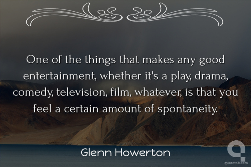 One of the things that makes any good entertainment, whether it's a play, drama, comedy, television, film, whatever, is that you feel a certain amount of spontaneity.