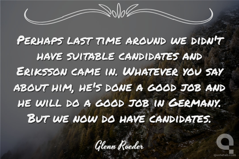 Perhaps last time around we didn't have suitable candidates and Eriksson came in. Whatever you say about him, he's done a good job and he will do a good job in Germany. But we now do have candidates.