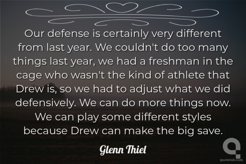 Our defense is certainly very different from last year. We couldn't do too many things last year, we had a freshman in the cage who wasn't the kind of athlete that Drew is, so we had to adjust what we did defensively. We can do more things now. We can play some different styles because Drew can make the big save.