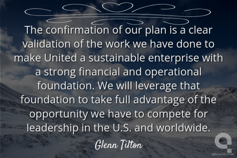 The confirmation of our plan is a clear validation of the work we have done to make United a sustainable enterprise with a strong financial and operational foundation. We will leverage that foundation to take full advantage of the opportunity we have to compete for leadership in the U.S. and worldwide.
