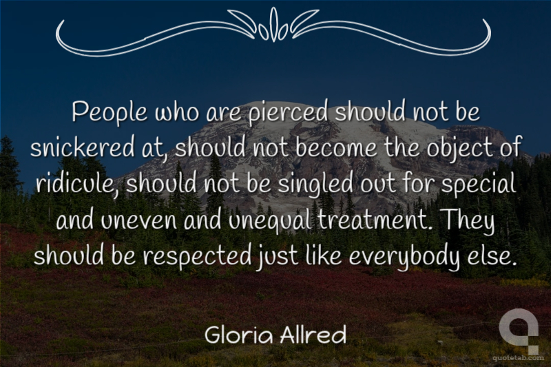 People who are pierced should not be snickered at, should not become the object of ridicule, should not be singled out for special and uneven and unequal treatment. They should be respected just like everybody else.
