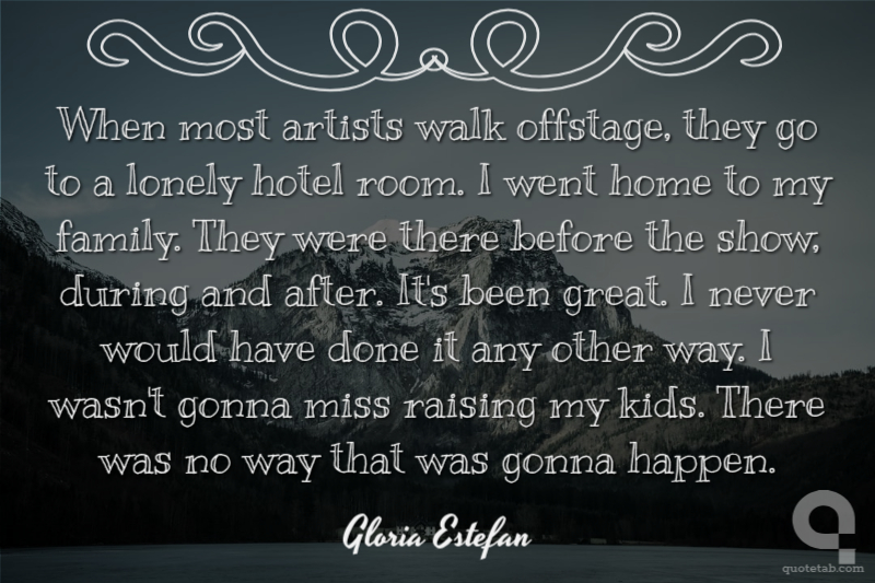 When most artists walk offstage, they go to a lonely hotel room. I went home to my family. They were there before the show, during and after. It's been great. I never would have done it any other way. I wasn't gonna miss raising my kids. There was no way that was gonna happen.