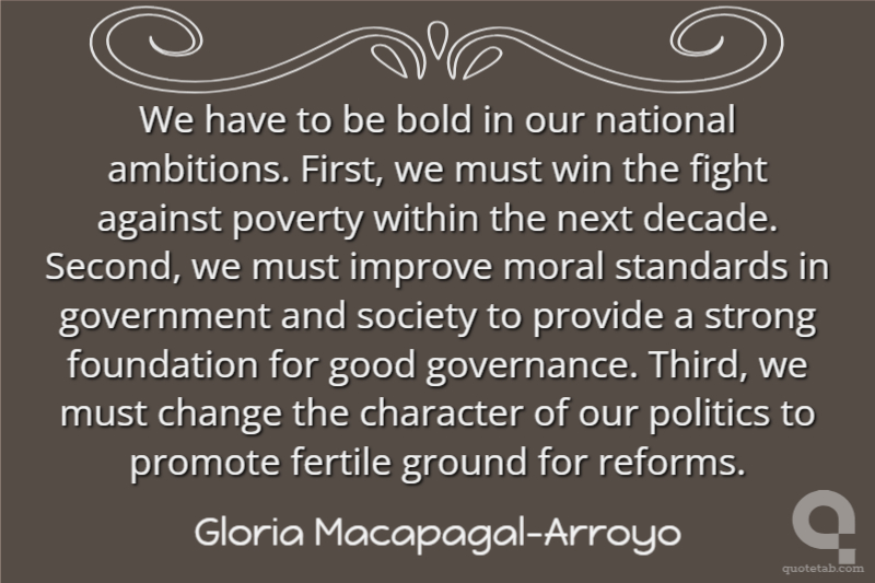 We have to be bold in our national ambitions. First, we must win the fight against poverty within the next decade. Second, we must improve moral standards in government and society to provide a strong foundation for good governance. Third, we must change the character of our politics to promote fertile ground for reforms.
