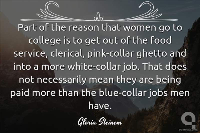 Part of the reason that women go to college is to get out of the food service, clerical, pink-collar ghetto and into a more white-collar job. That does not necessarily mean they are being paid more than the blue-collar jobs men have.