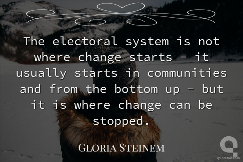 The electoral system is not where change starts - it usually starts in communities and from the bottom up - but it is where change can be stopped.