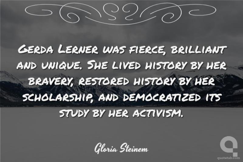 Gerda Lerner was fierce, brilliant and unique. She lived history by her bravery, restored history by her scholarship, and democratized its study by her activism.