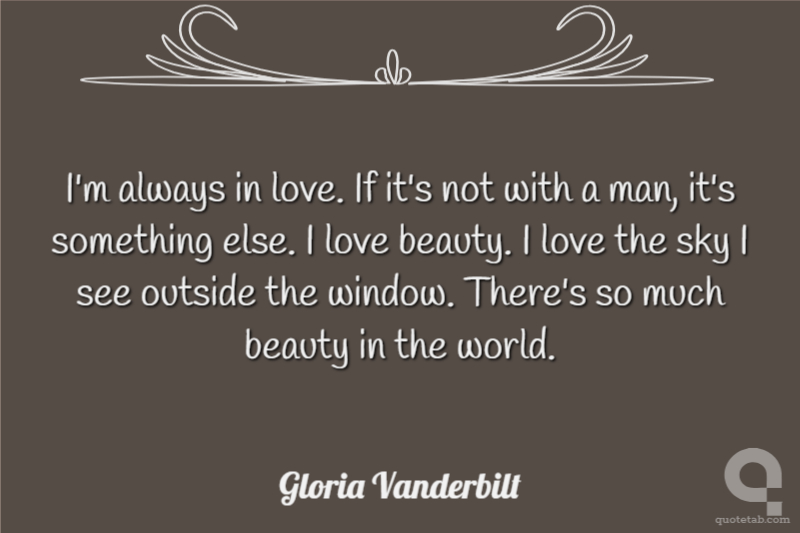 I'm always in love. If it's not with a man, it's something else. I love beauty. I love the sky I see outside the window. There's so much beauty in the world.