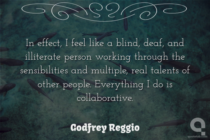 In effect, I feel like a blind, deaf, and illiterate person working through the sensibilities and multiple, real talents of other people. Everything I do is collaborative.