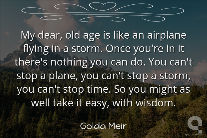 My dear, old age is like an airplane flying in a storm. Once you're in it there's nothing you can do. You can't stop a plane, you can't stop a storm, you can't stop time. So you might as well take it easy, with wisdom.