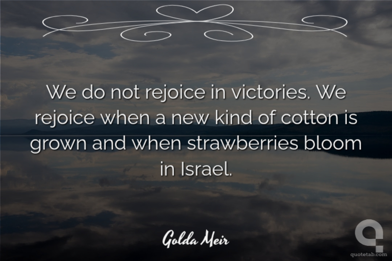 We do not rejoice in victories. We rejoice when a new kind of cotton is grown and when strawberries bloom in Israel.