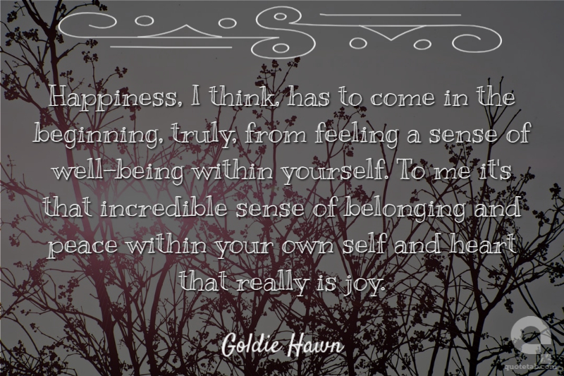 Happiness, I think, has to come in the beginning, truly, from feeling a sense of well-being within yourself. To me it's that incredible sense of belonging and peace within your own self and heart that really is joy.