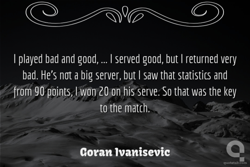 I played bad and good, ... I served good, but I returned very bad. He's not a big server, but I saw that statistics and from 90 points, I won 20 on his serve. So that was the key to the match.
